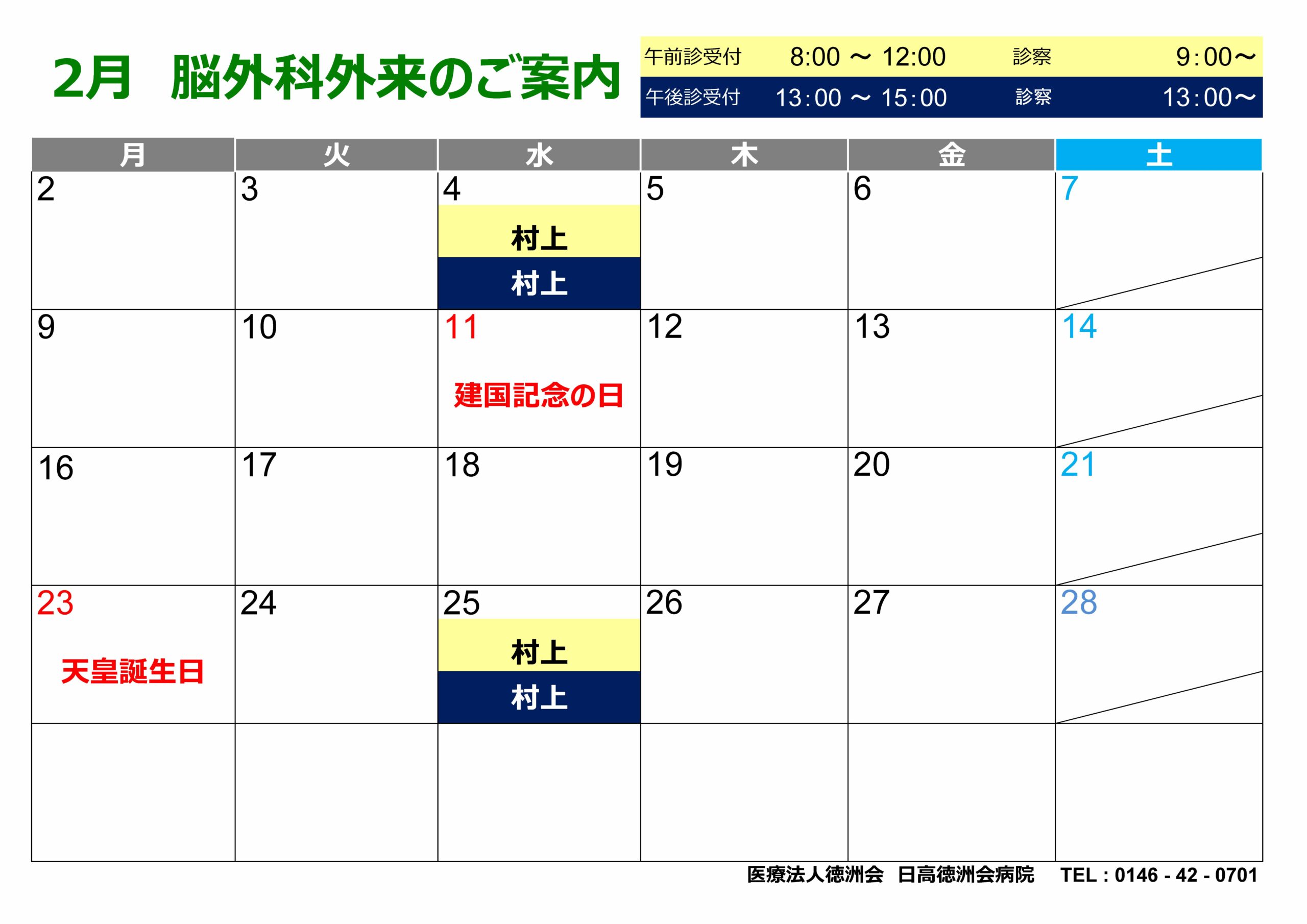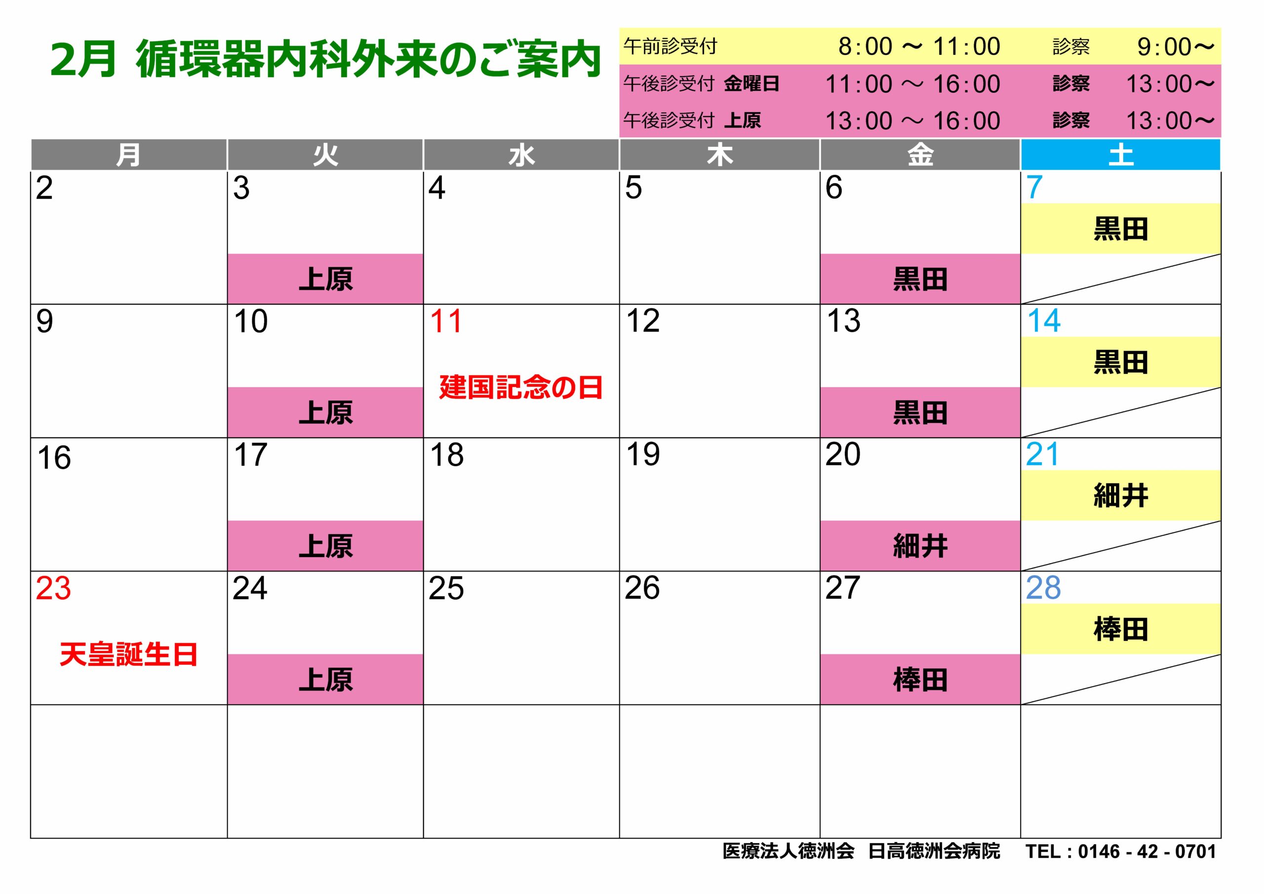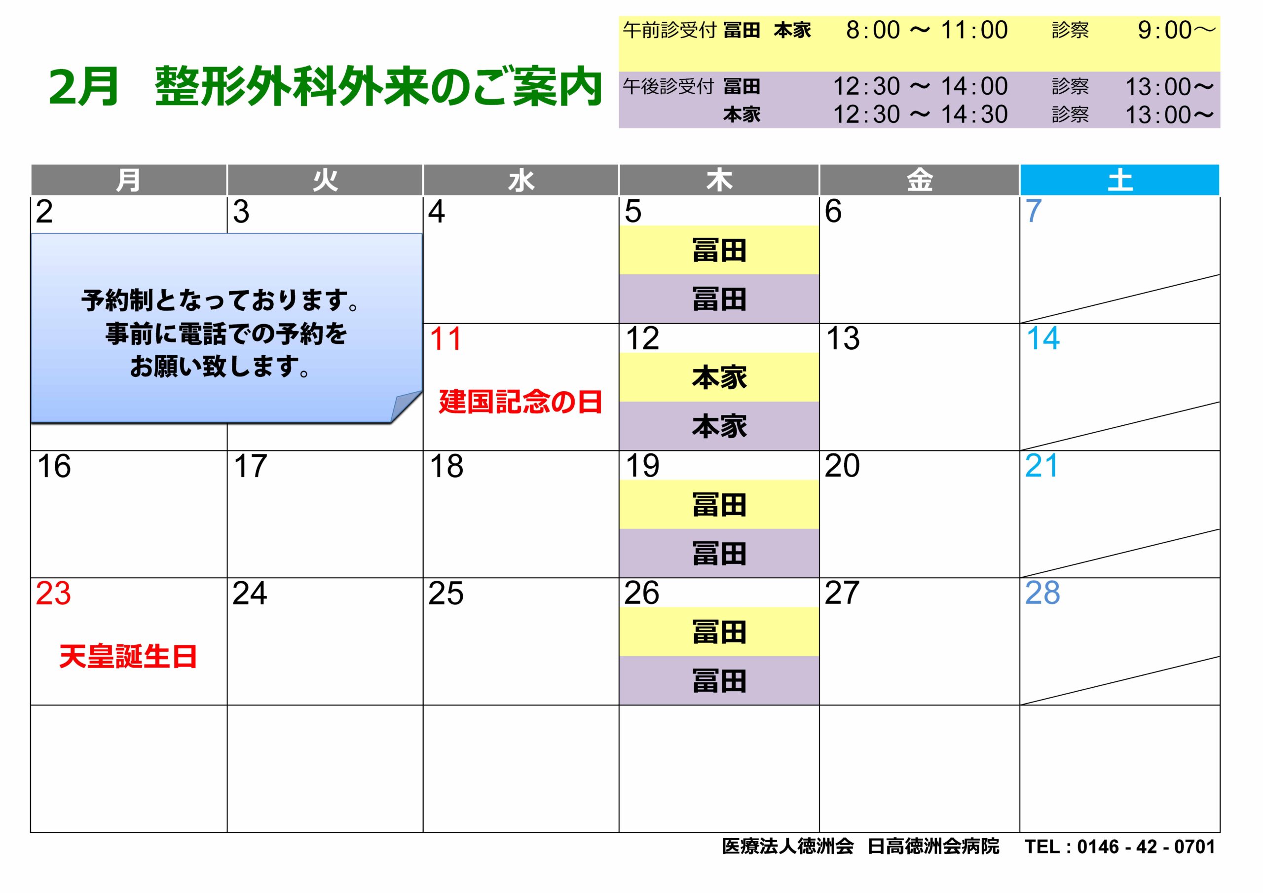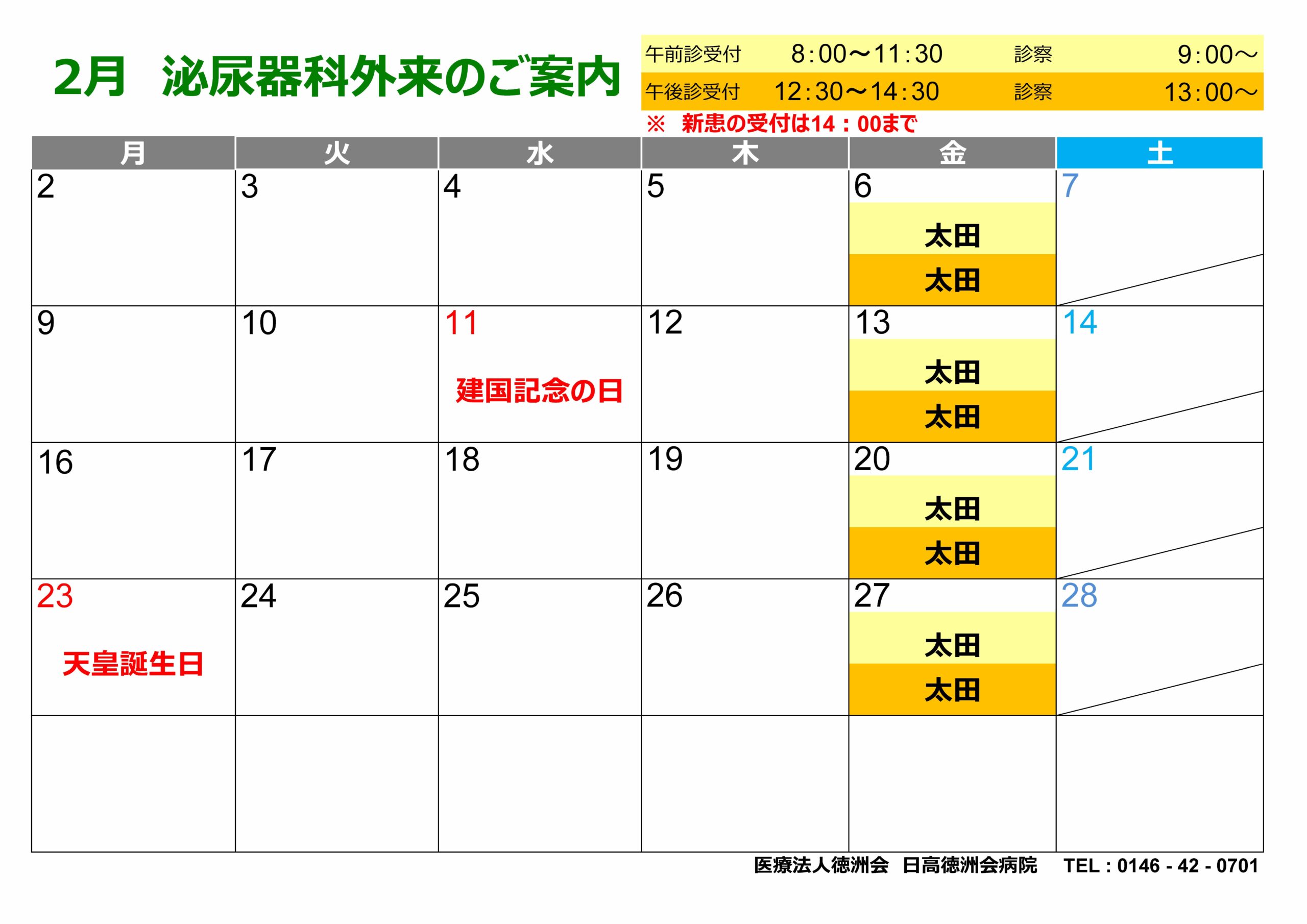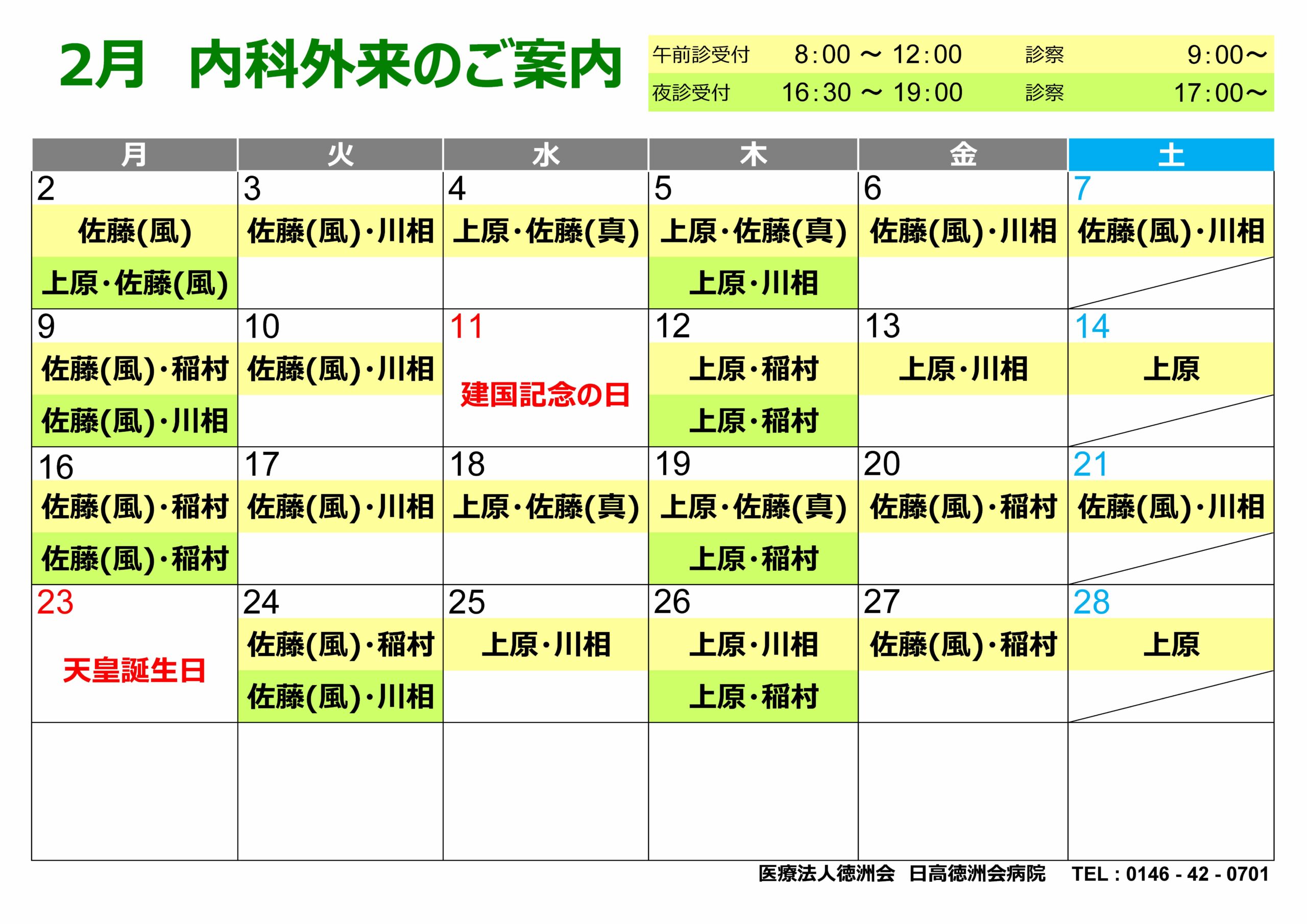 下記の月間予定表をご確認ください。 - 日曜日・祝日は通常診療は行っておりませんが、急病、急患の方は、何時でも受付しております。